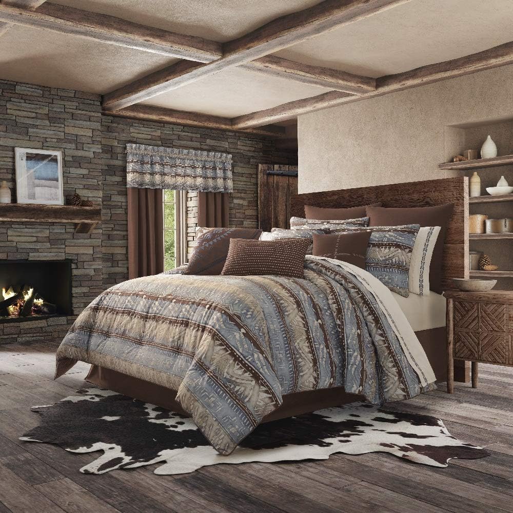 Luxury Southwestern Bedding / Shop Veratex Sonorah Luxury Southwestern 4-piece Comforter Set - Free Shipping Today - Overstock ... : Create a relaxed feeling of a wilderness sanctuary with designer rustic bedding sets.. Bring into your bedroom the themes of the southwest. The luxury star comforter set features an iconic western star printed on neutral faux suede. Southwest bedding inspired by southwestern designs, this collection brings together rustic colors and geometric shapes to create a sophisticated look for your bedroom. This gorgeous bedding set has bear and pine tree appliqués, antique gold rivets, and fringe that add a rustic touch to the appealing olive green, faded blue and chocolate plaid microsuede. Steer horns mounted over the headboard are always a popular decorating choice, although you could also accentuate your bedside with a stained glass lamp in shades of amber, brown, and marbled green.