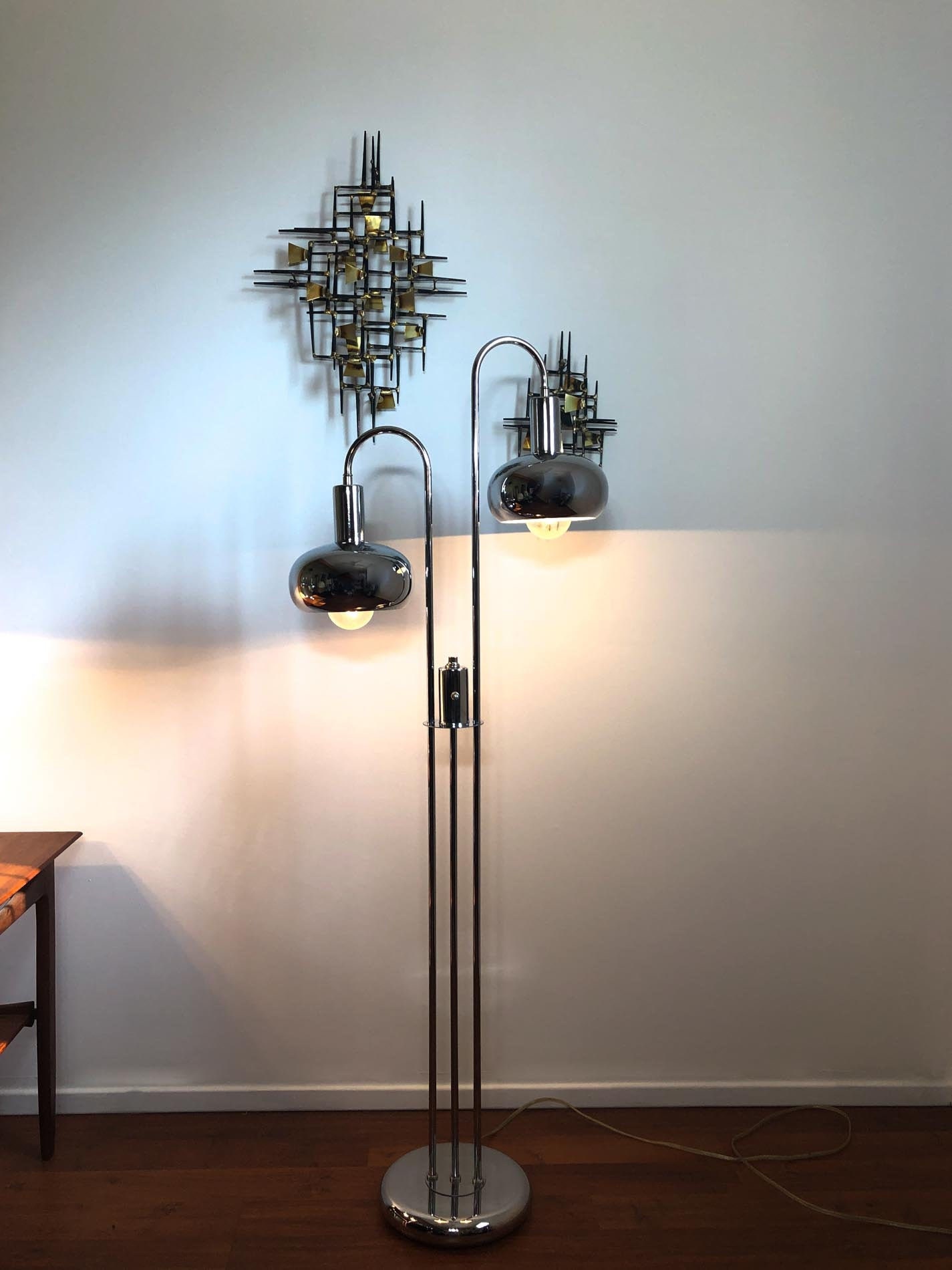Crafted of metal in a fashionable finish, this lamp features a tubular column post stemming from a round pedestal base accented by a transparent crystal disc. Floor lamps are an essential lighting element that can illuminate dark spots, provide task lighting or. Lamp has a three way switch and the wiring seems in nice shape. Mid century vintage goffredo reggiani chrome 3 globe floor lamp. Modern arc floor lamp mid century light metal chrome shade marble base art deco.