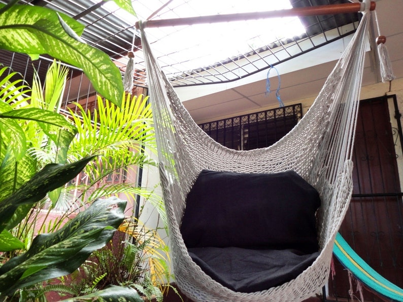 Rainbow Colors Sitting Hammock Hanging Chair Natural Cotton | Etsy from i.etsystatic.com Abrams hanging egg chair hammock with stand. The wide 44 spreader bar holds the chair open to the perfect distance, for easy entrance and exit. Check out the 18 reviews by happy customers for our hammocks hanging swings chairs and hammocks hanging swings chairs before you get them for yourself in your choice. Hammock chair with durable hanging hardware kit, exquisite dreamy round hanging chair, 100% cotton rope macrame swing chairs for indoor/outdoor bedroom patio deck or garden, max 550lbs, beige. Project one hanging rope hammock chair, hanging rope swing seat with 2 pillows, carrying bag, and hardware kit perfect for outdoor/indoor yard deck patio and garden, 300 pound capacity (dark grey) 4.3 out of 5 stars. Enjoy the perfect place to sit and read, or just relax. Hanging chairs already seem to be the trend this summer. Polycotton hammock chair with armrests in contrasting stripes this unique hanging hammock chair is the this unique hanging hammock chair is the perfect way to add comfort and style to any outdoor space.